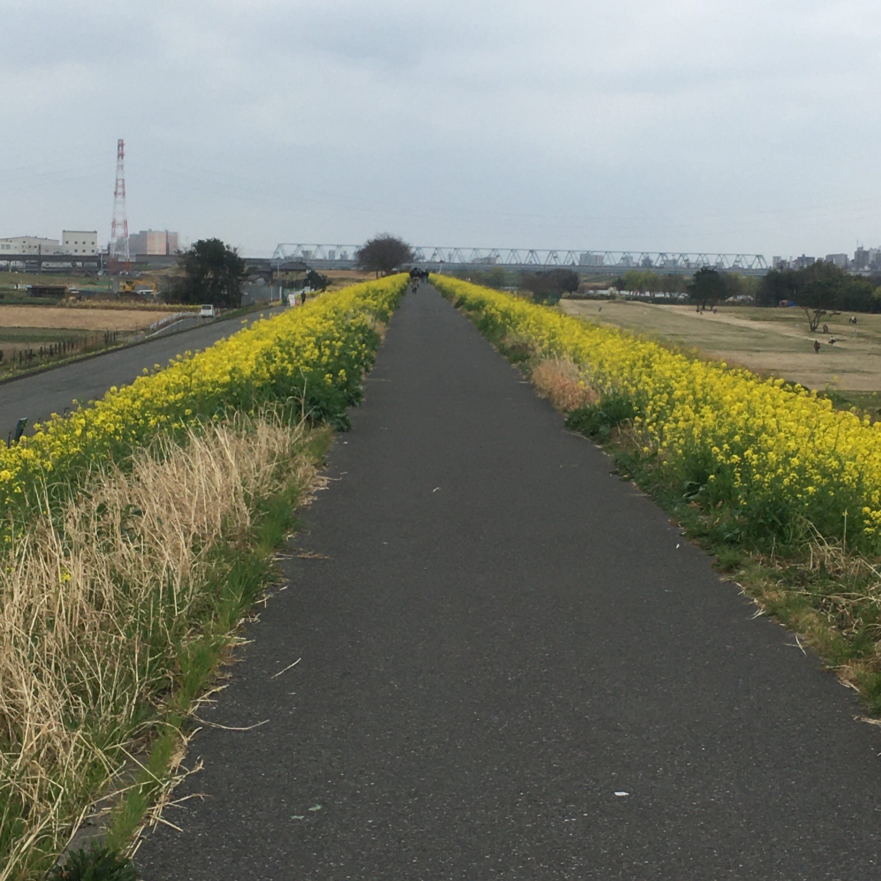 両脇に菜の花