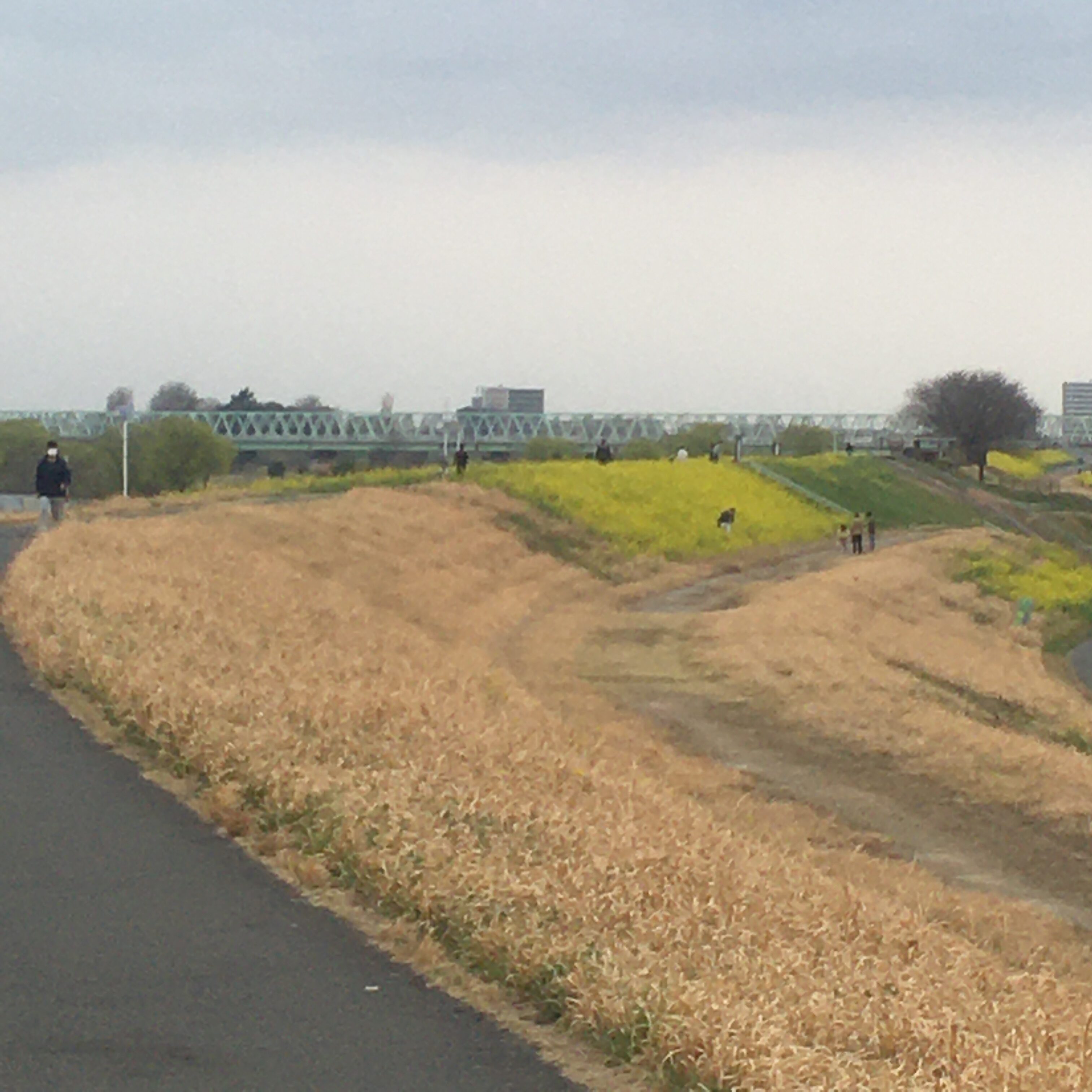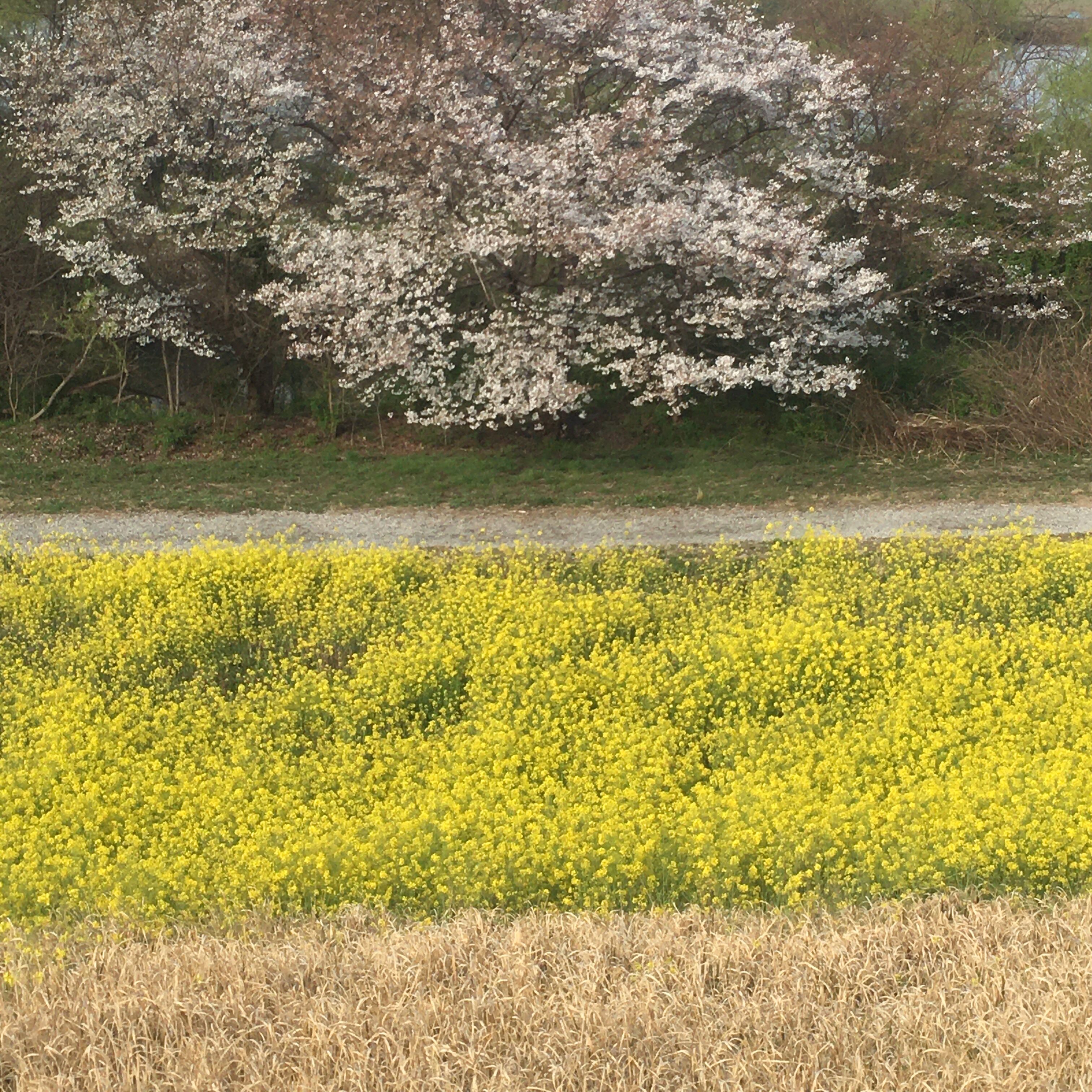 枯草、菜の花、桜の